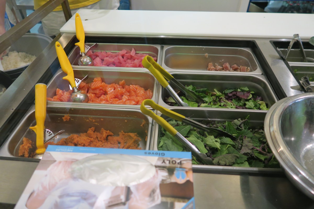 IMG_1185 Published September 2, 2016 at 5472 × 3648 in Day 74: TikiFish Poke (Palms) ← Previous Next → Choose a base of mixed greens, then choose your fish! You get three scoops and can min ‘n match